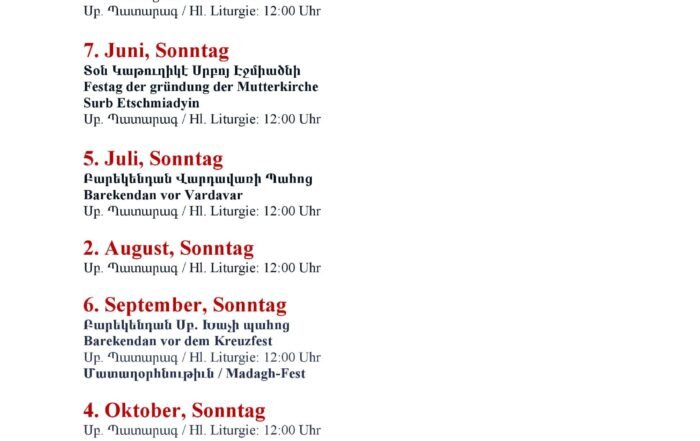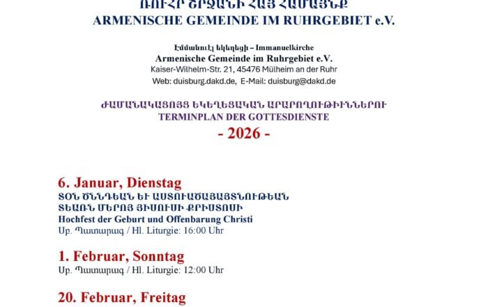 Ab dem Rosenmontag beginnt in der Armenischen Kirche die Große Fastenzeit vor Ostern (arm. Մեծ Պահք). Sie [...]